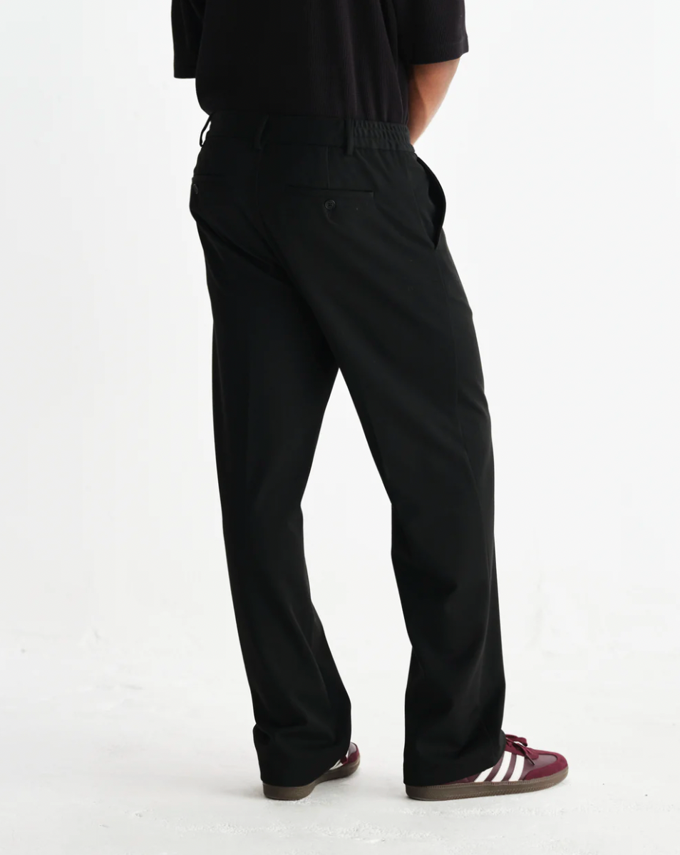 The Bayham strikes the perfect balance between comfort and style. Cut for a relaxed, straight fit that sits cleanly over your shoes, this black edition is made from a super-soft viscose blend with a hint of stretch for added ease. It features a zip fly, two rear jet pockets with branded buttons, and a half-elasticated waistband.