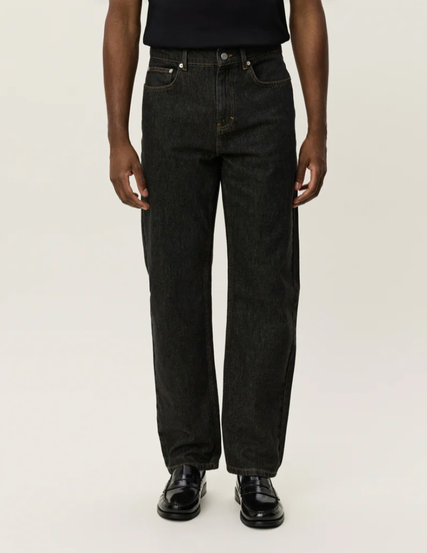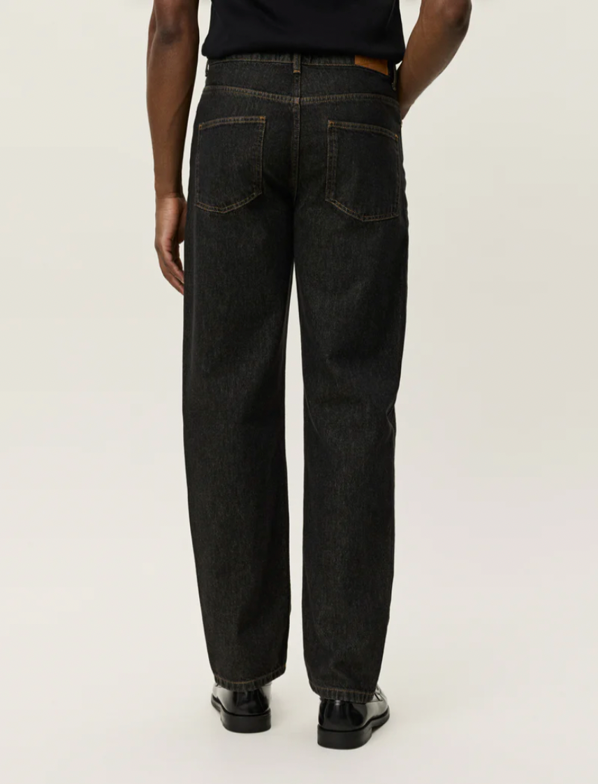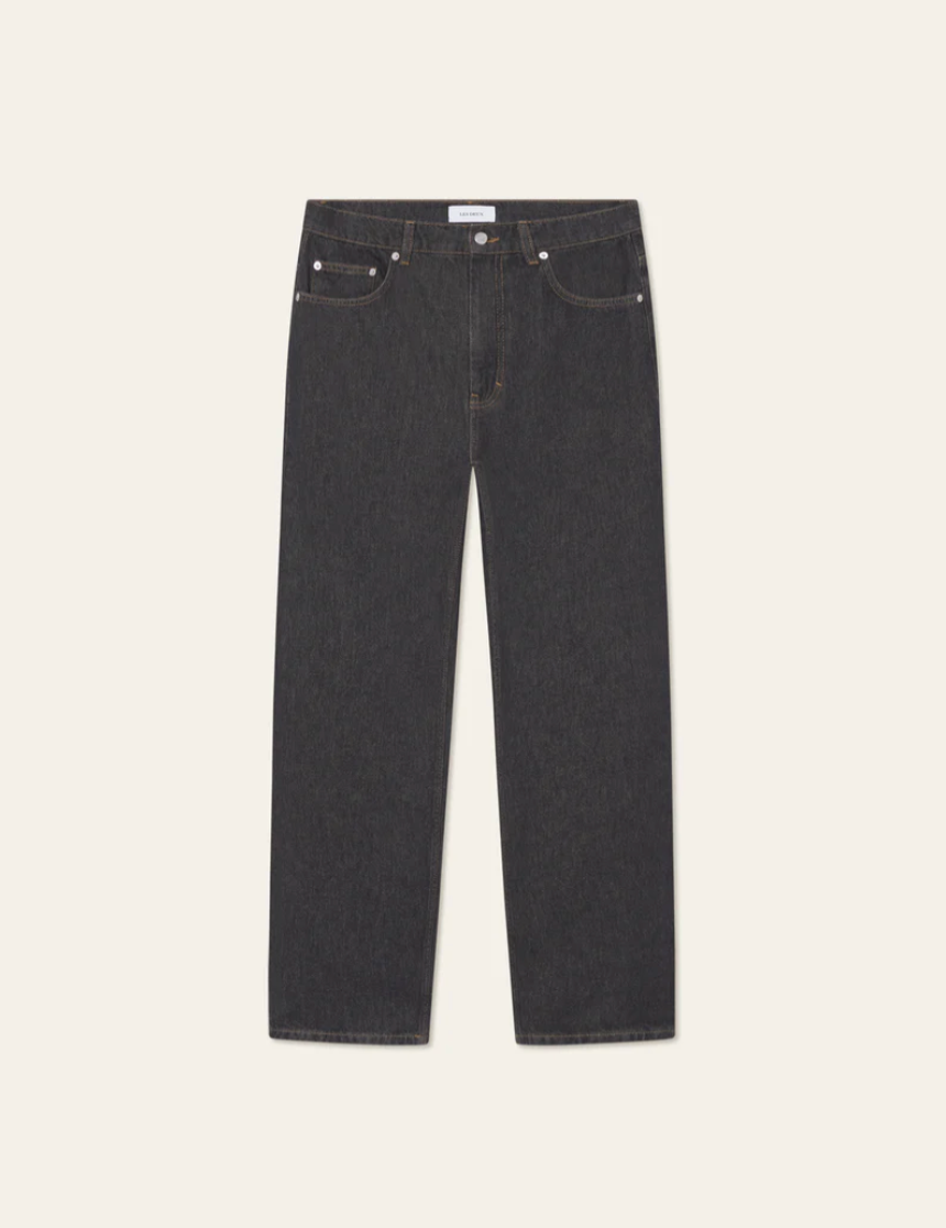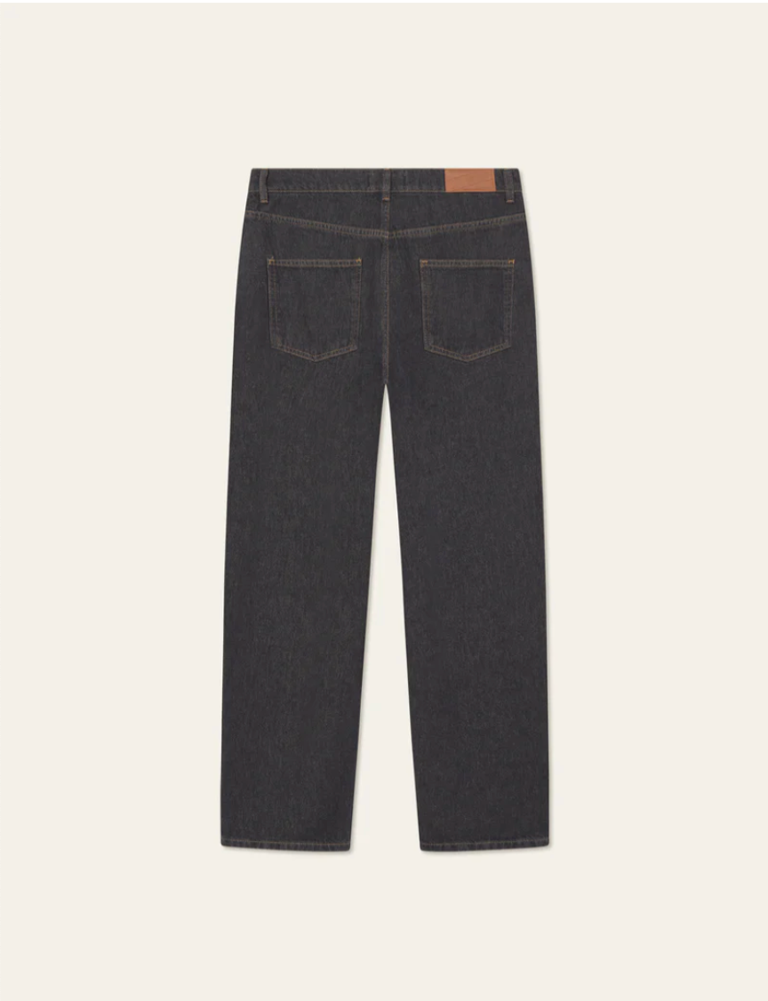 Clean denim with subtle contrast. The Ricky is cut from heavyweight cotton denim with contrast stitching, selvedge-style details, and finished with a branded jacron patch at the back.