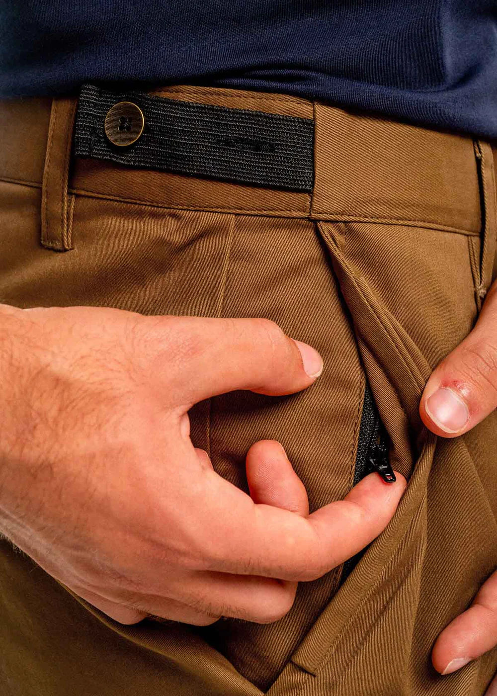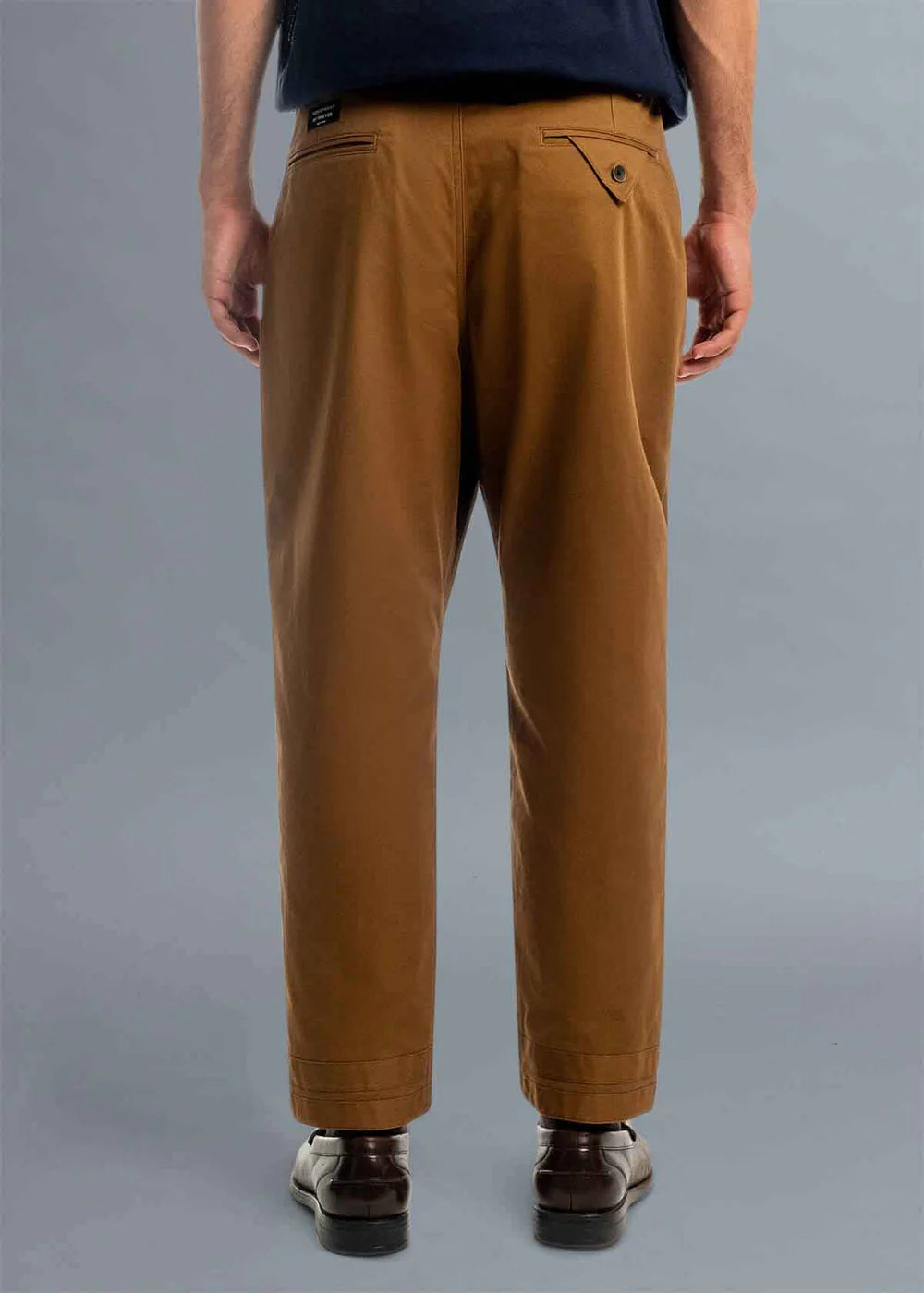 The Black Twill Boxer Fit pant is a wide single-pleat Pant designed for those seeking a relaxed fit. Crafted from soft yet durable mid-weight cotton twill with a hint of stretch for comfort and mobility. With a year-round fabric weight of 185 grams, they are versatile for all seasons, including the warmer months. As with all of our pants, we have a hidden zip pocket built into the left pocket to quietly protect your valuables and a mobile pocket inset on the right pocket to safeguard your screen from scratches and movement. A back triangle button closure flap can be tucked away and hidden. An effortless blend of style and functionality.