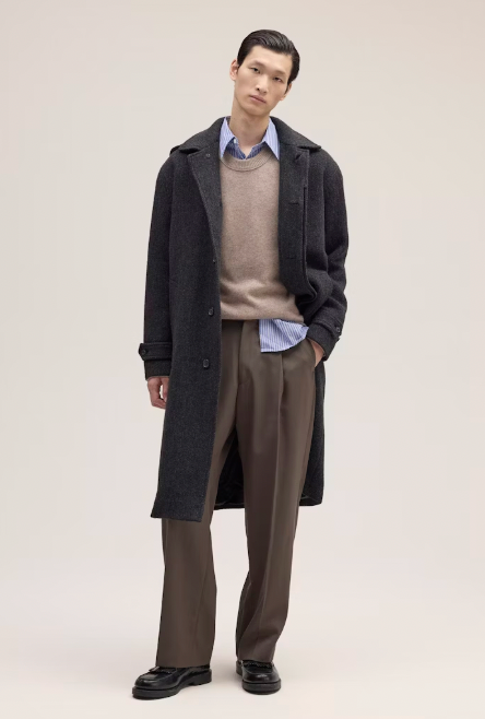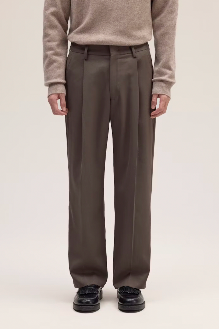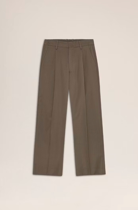 Relaxed-fit tailored trousers crafted from a heavy 410 g/m², refined wool blend twill. Designed with an elasticated waistband at the back for added comfort and front pleats for an elegant drape.