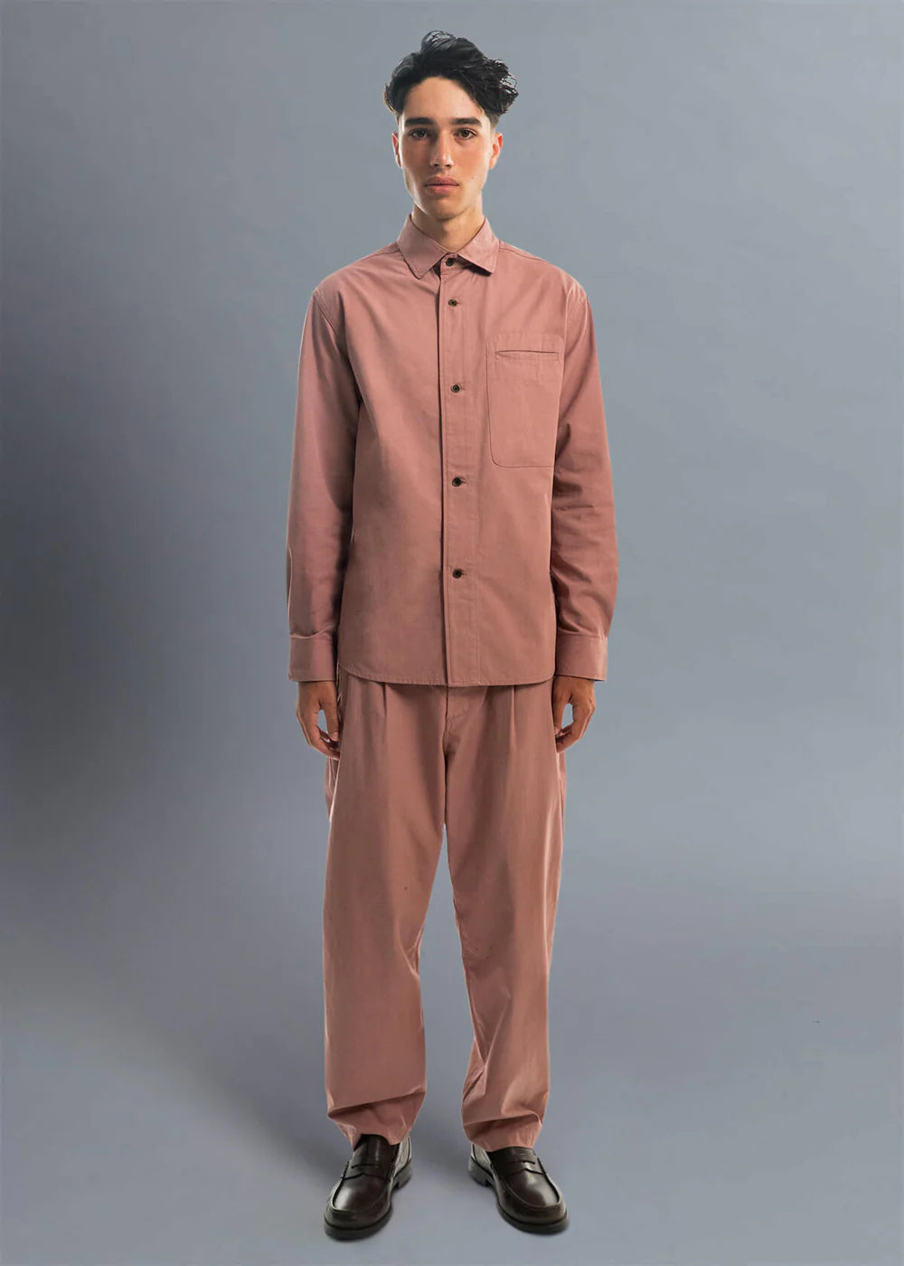 Headlines Twill Shirt in Mauve. A muted rose that speaks softly but still turns heads. Engineered for minimalists who want something unexpected. The technical finish gives it structure with comfort in equal measure. Cut from a soft rose-clay twill, designed to pair with matching trousers. Call it the new suit separate.