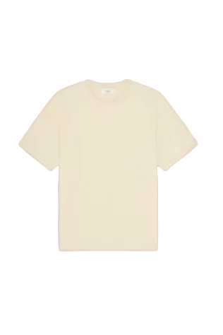 Medium-weight t-shirt crafted from premium organic cotton with a dry, textured feel. Designed with top stitching at the neckline and twin needle finishes.