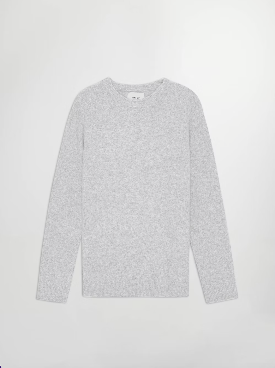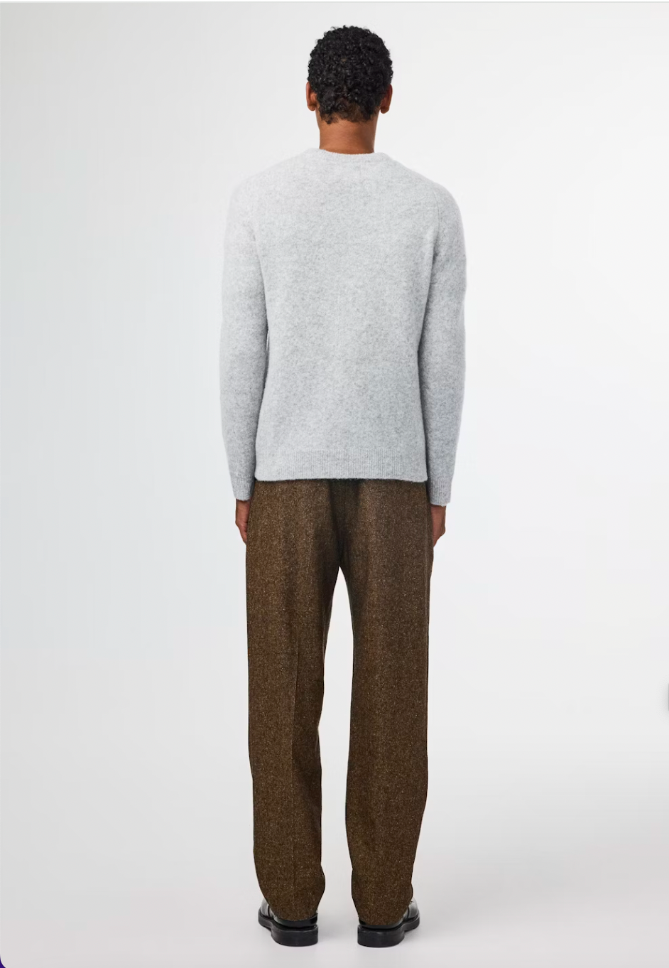 Knitted crewneck crafted from an ultra-soft brushed bouclé responsible wool blend, designed with saddle sleeves.
