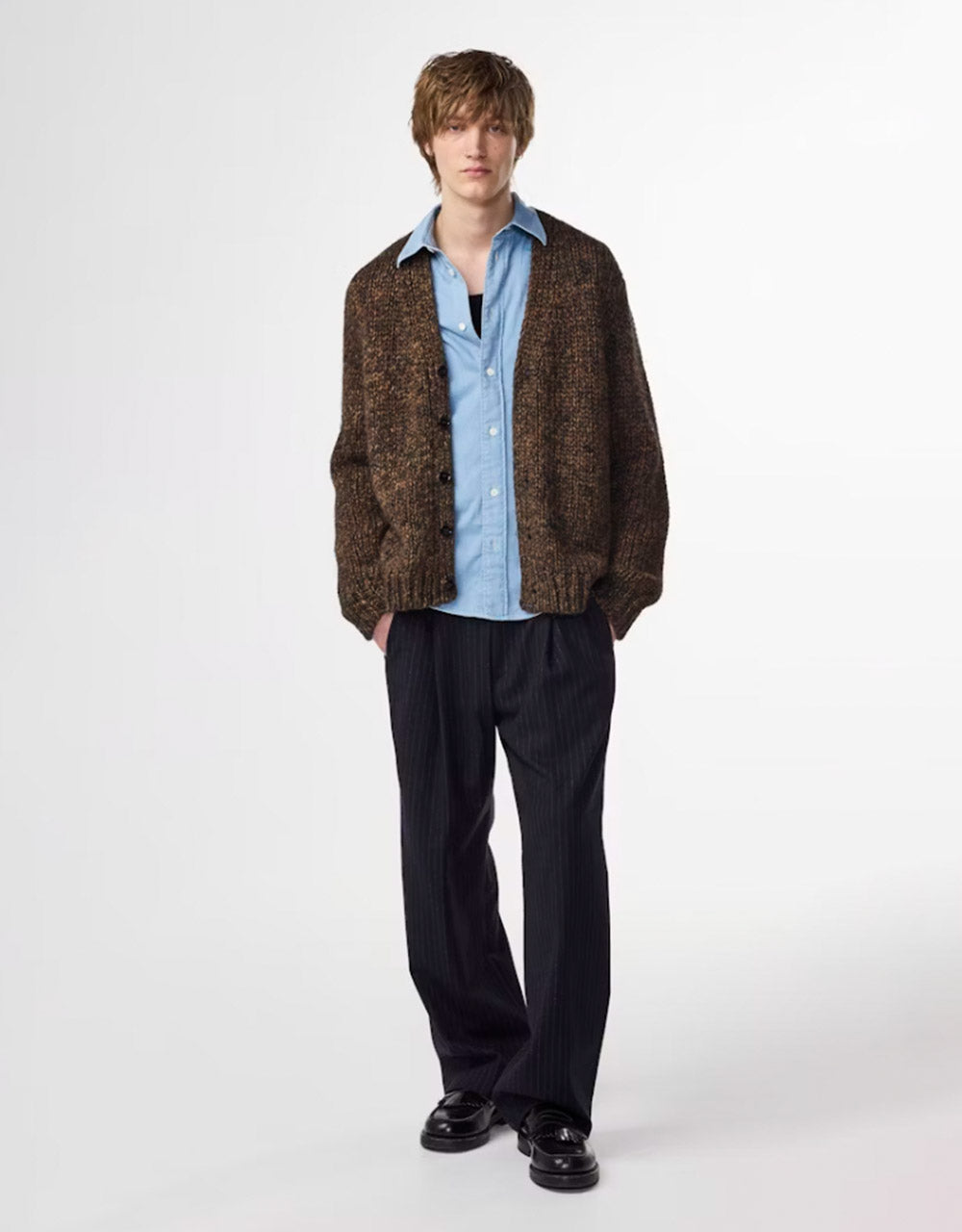 Cardigan made from a fluffy mouline yarn in an alpaca wool blend. Features a chunky, soft texture and is finished with refined corozo buttons.