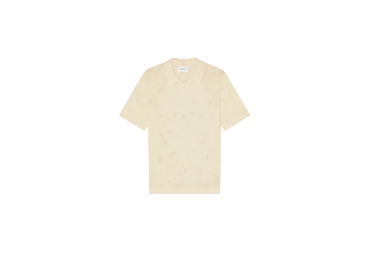 Pointelle polo crafted from lightweight organic cotton jersey with a delicate stitch design combining pointelle and jersey artwork. Offers a soft handfeel and relaxed charm, completed with a clean placket.