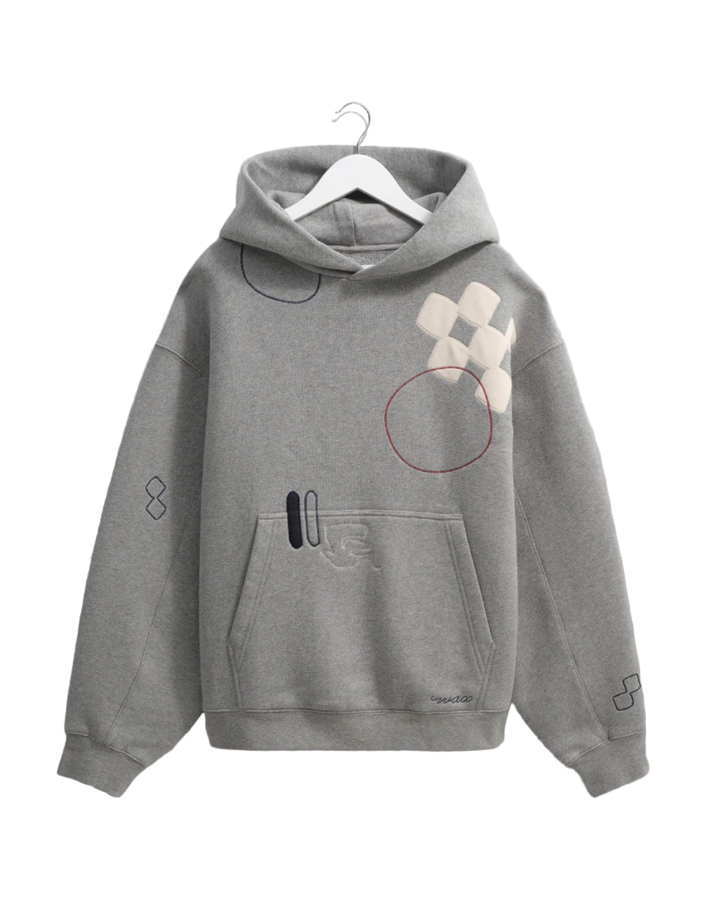 Grey Cotton Hoodie with Multi-Colored Patchwork and Embroidery