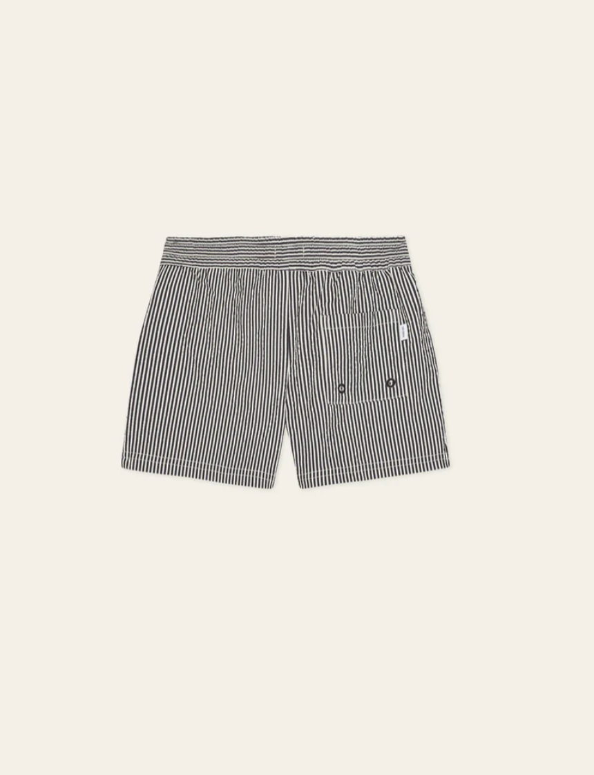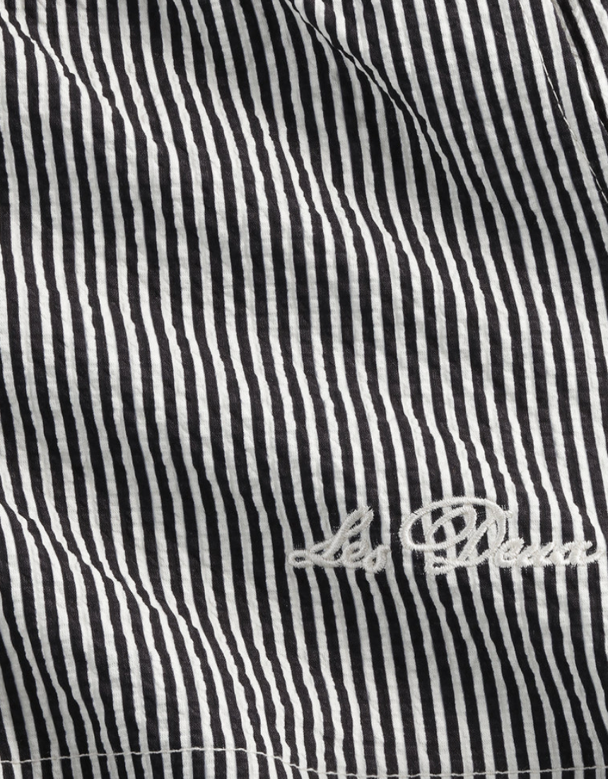 Striped seersucker swim shorts with a textured surface and a relaxed cut. Designed with an elasticated waist and subtle front embroidery.