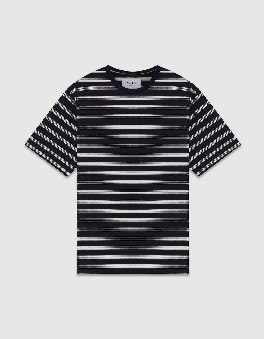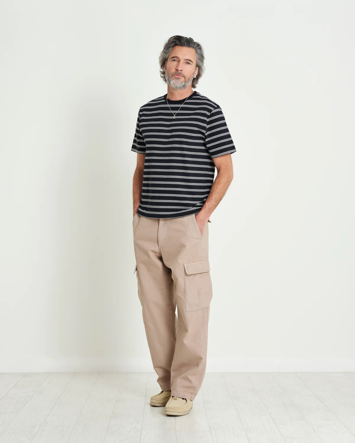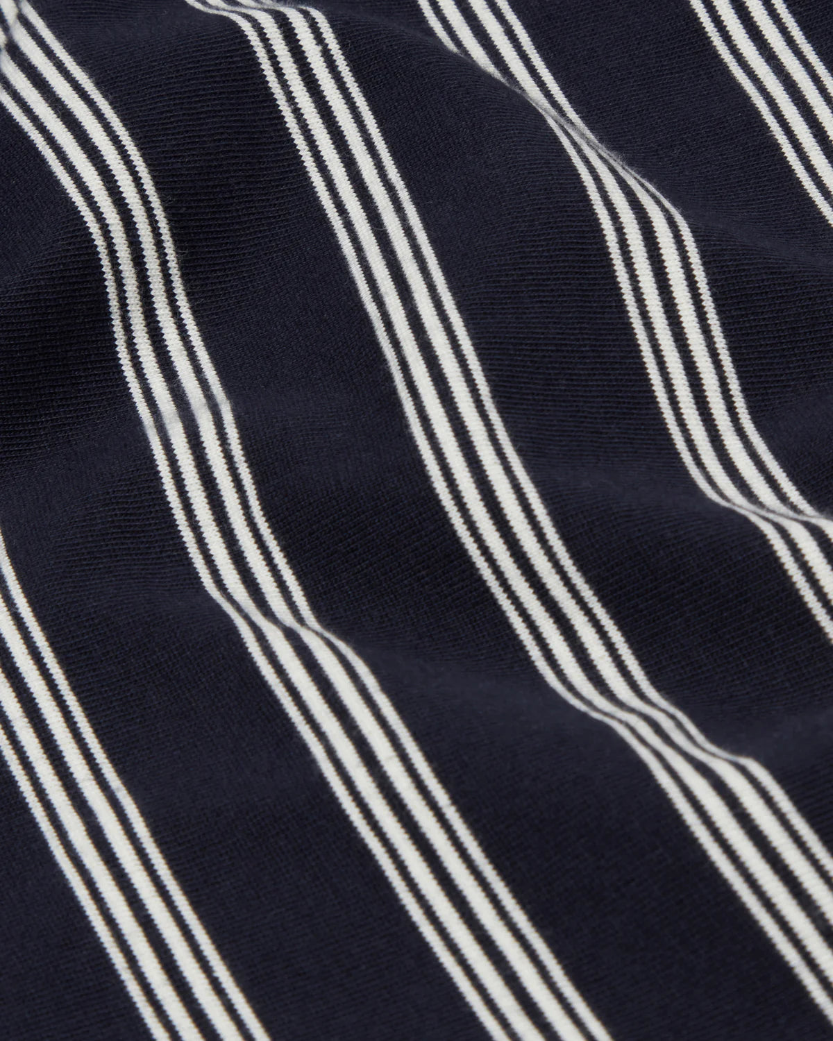 Made from a heavyweight 100% organic cotton in Navy/Ecru Stripe. Wear yours with our Kurt Trousers or Shorts.