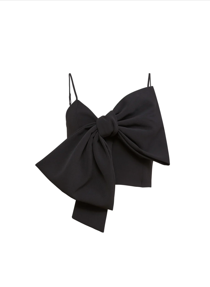 Our chic Blair Bow Top, featuring flattering cropped fit with boning and oversized front bow. Powermesh back with exposed zip closure. Take it out with the Tuxedo Pant.