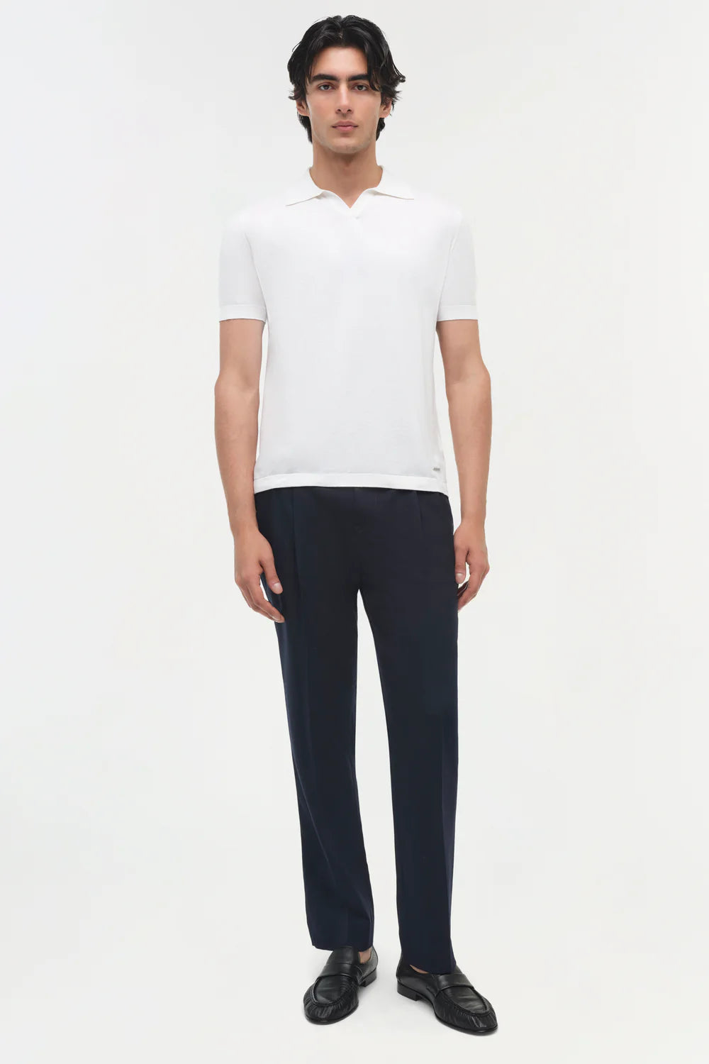 Knitted for a refined, close-to-body fit, this short-sleeve polo delivers a modern interpretation of a timeless staple. The smooth hand enhances its simplicity, while the classic collar adds an effortless, off-duty sophistication. Lightweight yet polished, it pairs seamlessly with tailored trousers or denim, making it a versatile essential for understated, everyday ease.