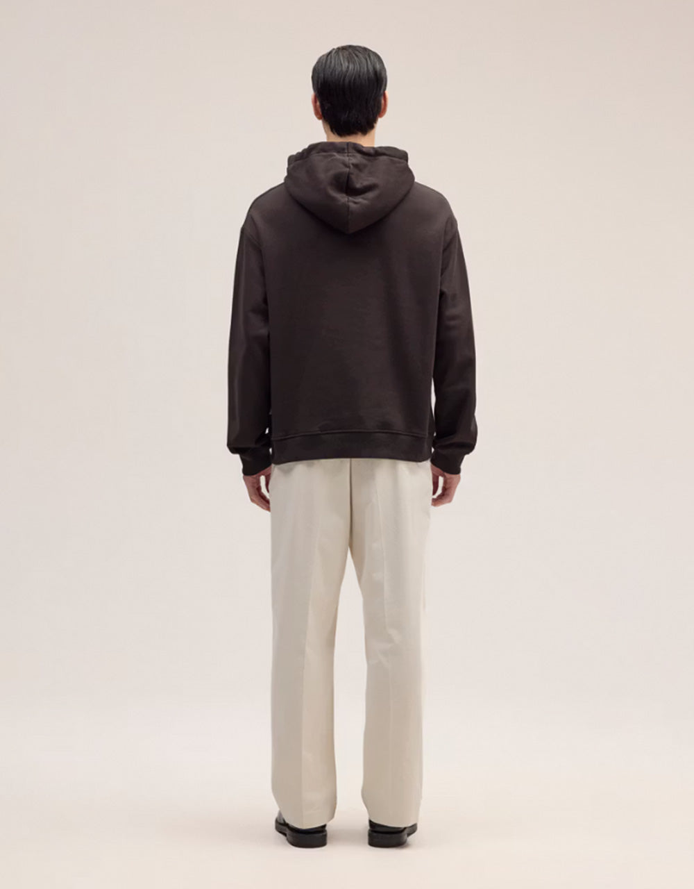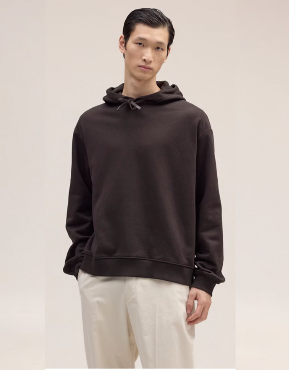 Relaxed-fit hoodie crafted from heavyweight organic cotton fleece with a soft, peachy texture. Featuring a double-layer hood and ribbed details for a premium feel.