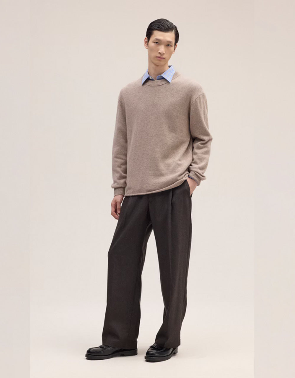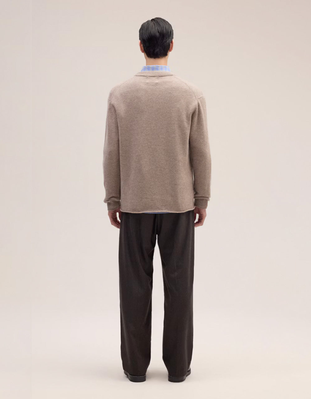 Relaxed crew neck sweater crafted from 100% Cashmere for an ultra-soft, fluffy hand feel. Finished with a rolled edge at the bottom for a refined touch.
