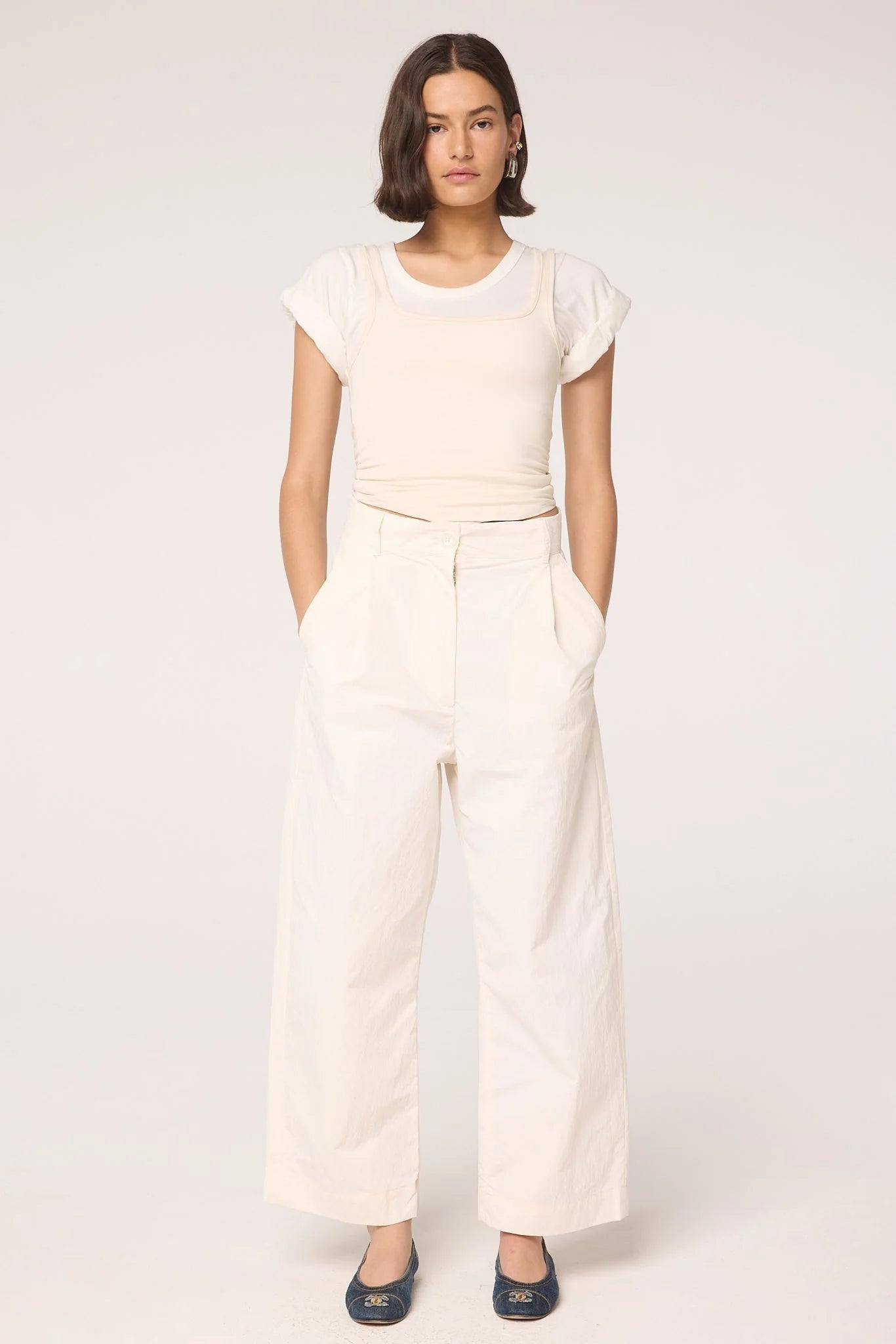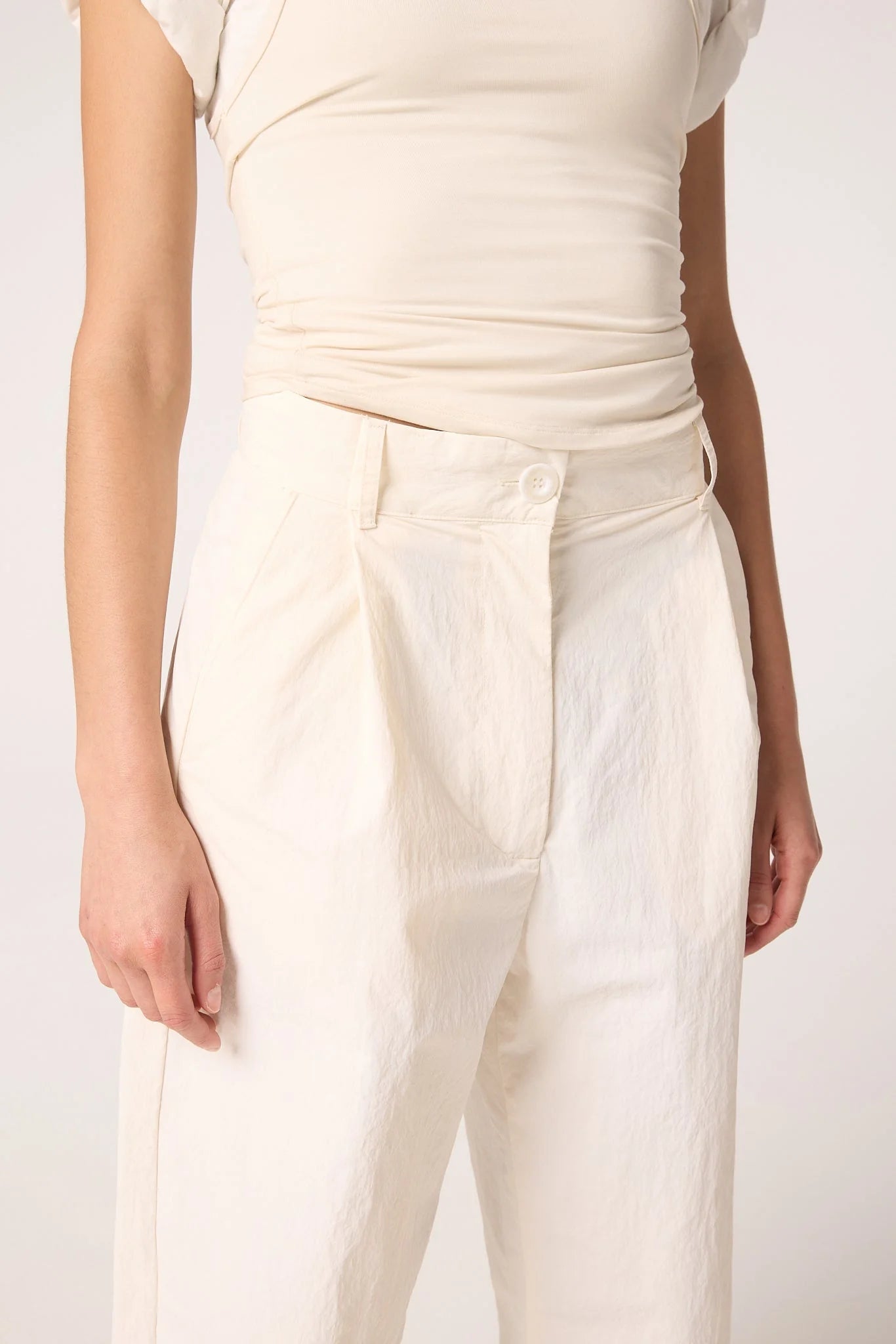 Cut from a mid-weight crisp nylon, the Levin reimagines a classic pleated trouser. With a longer rise and wide leg, it is a true wardrobe essential. Pair it with an easy-to-wear top like the Daqi for everyday ease.