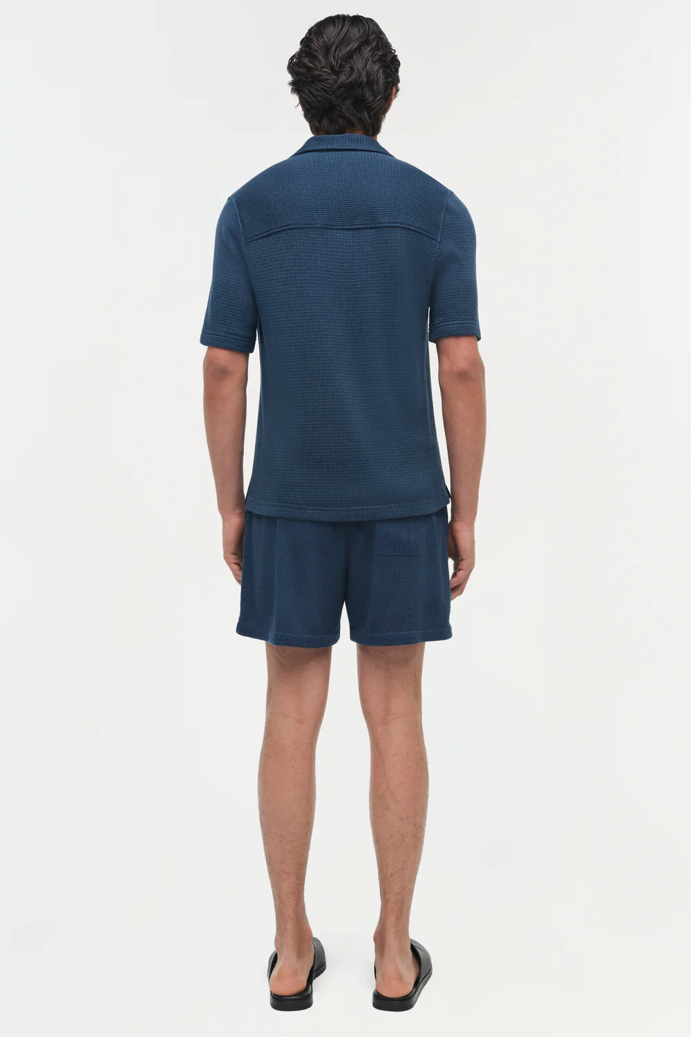 Woven from a wool-silk blend with a dimensional waffle texture, this shirt combines relaxed ease with subtle structure. The softly draped silhouette offers a polished, modern take on everyday layering.