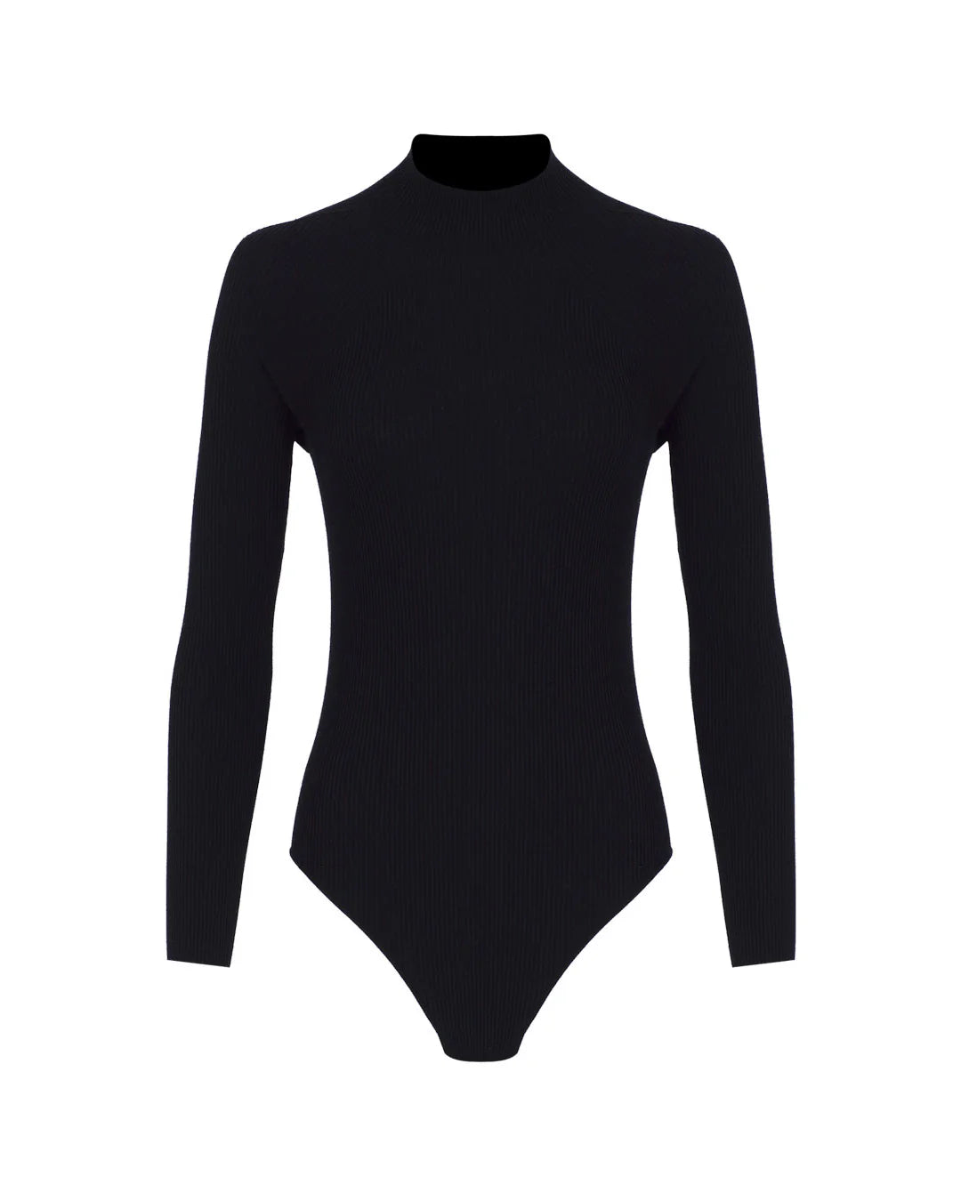Organic Cotton Long Sleeve T-Shirt Bodysuit-Black