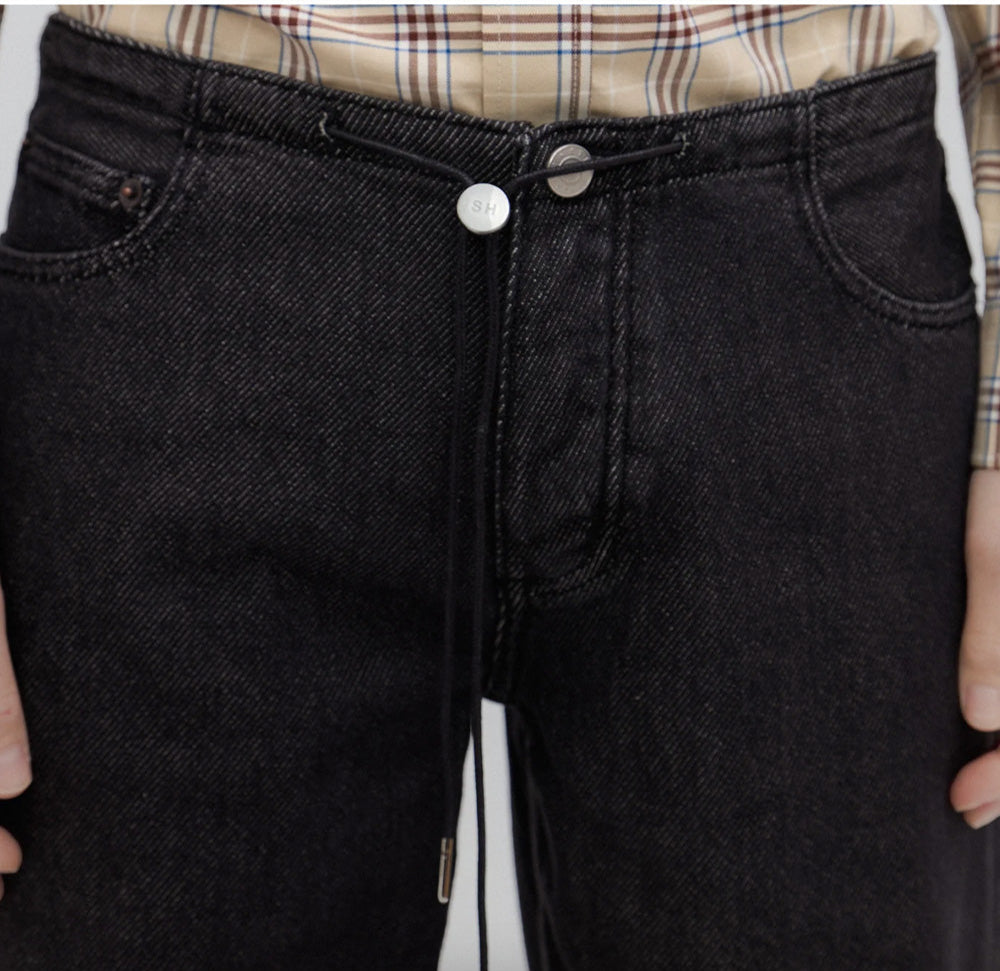 The Cool jean is a relaxed leg, low-rise jean with an adjustable drawstring toggle. The Cool has no waistband (yes, no waistband.) It features a traditional button fly, custom hardware and our signature 'SH' embroidery