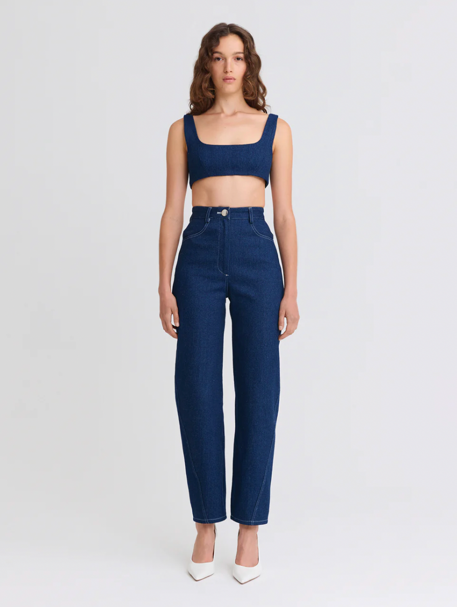High waist twist seam jeans, pair with the tie back crop top to complete the fit.