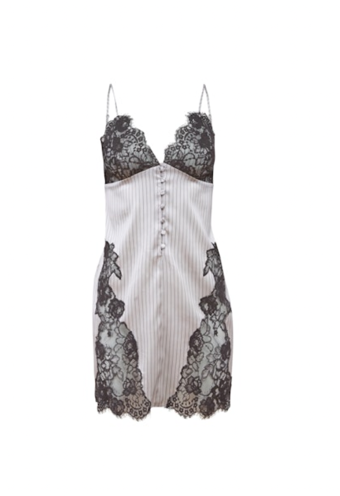 Ash Pin Stripe Mini Slip Dress with Lace Detailing