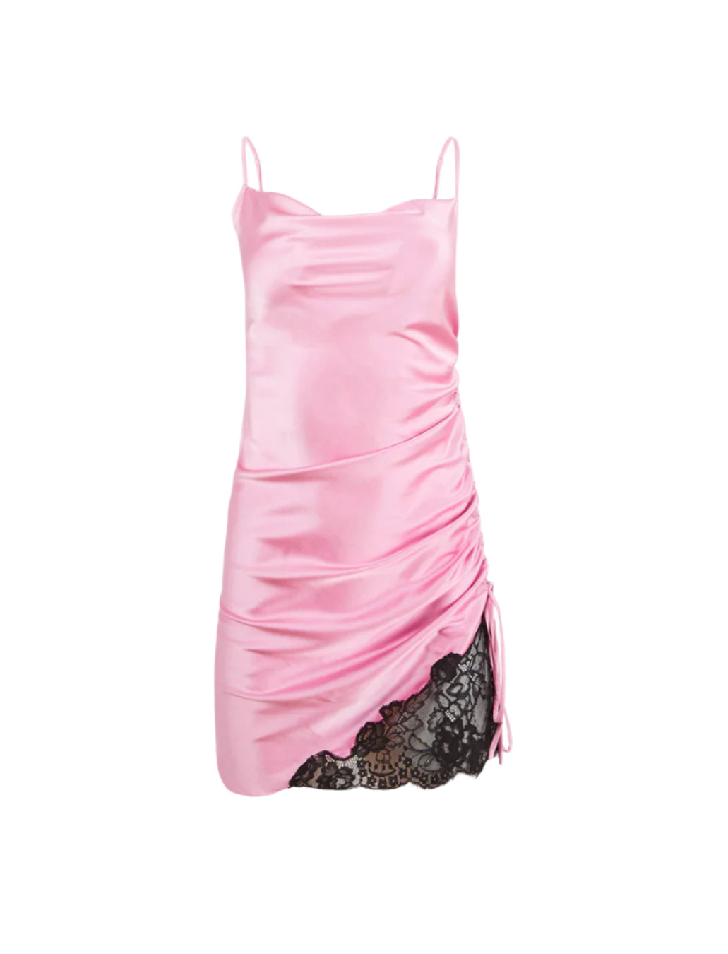 Ruched, for your pleasure. Ultra chic Silk Ruched Dress, cut from luxe silk charmeuse with cowl neckline and adjustable straps. Features adjustable side ruching and asymmetrical hem, with lace detail for added sex appeal. Layer over your favorite Essential panty and be the best dressed guest at any party.