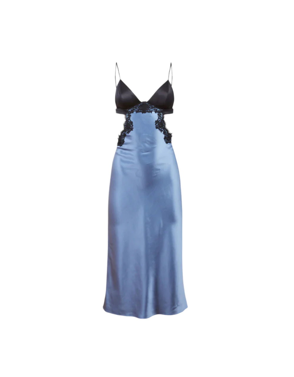 From date night to late night. Our chic Silk & Lace Cutout Slip combines our best selling Luxe Triangle Bra with the ease and wearability of a slip. Features cut out sides with lace trim and open back to amp up the sex appeal. Flattering bias falls just below the knee. Pair with heels and an extra dirty martini.