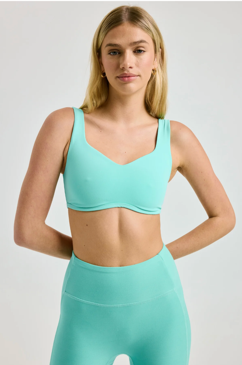 You’ll adora the Isadora Bra top with its cute curved cup-like bottom front edge detailing with ⅜” binding along opening. Self-lining throughout front and back with 1" W supporting shoulder straps. Made with Stretch Active Jersey.