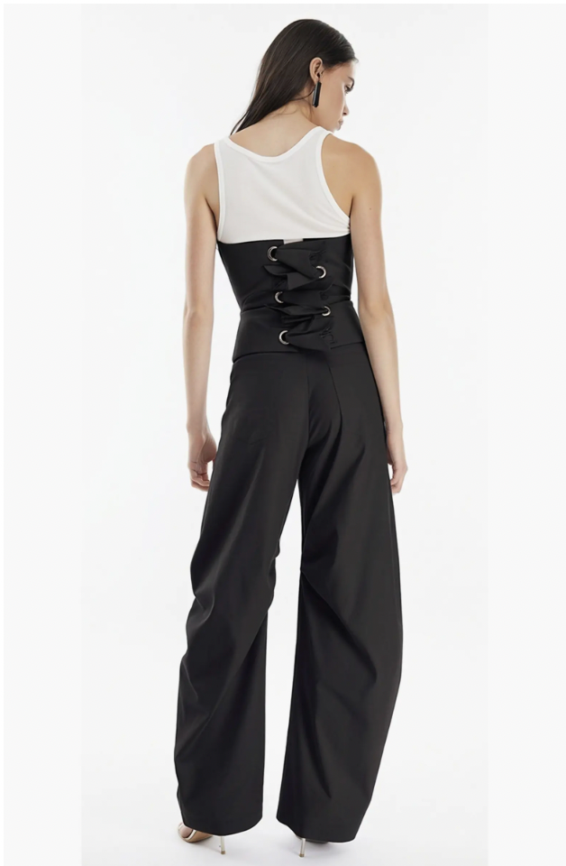 A work of art in itself, for a daring woman. This dramatic feminine corset top boasts a sculpted neckline and chic princess seams that will elevate your style to new heights and highlight your figure. The unique back ties add a touch of contrast, making you stand out in any crowd.