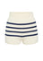High rise, striped knit hot shorts. Pair with our Chrys Sweater to complete the look. Shown here in Eggshell/Navy.