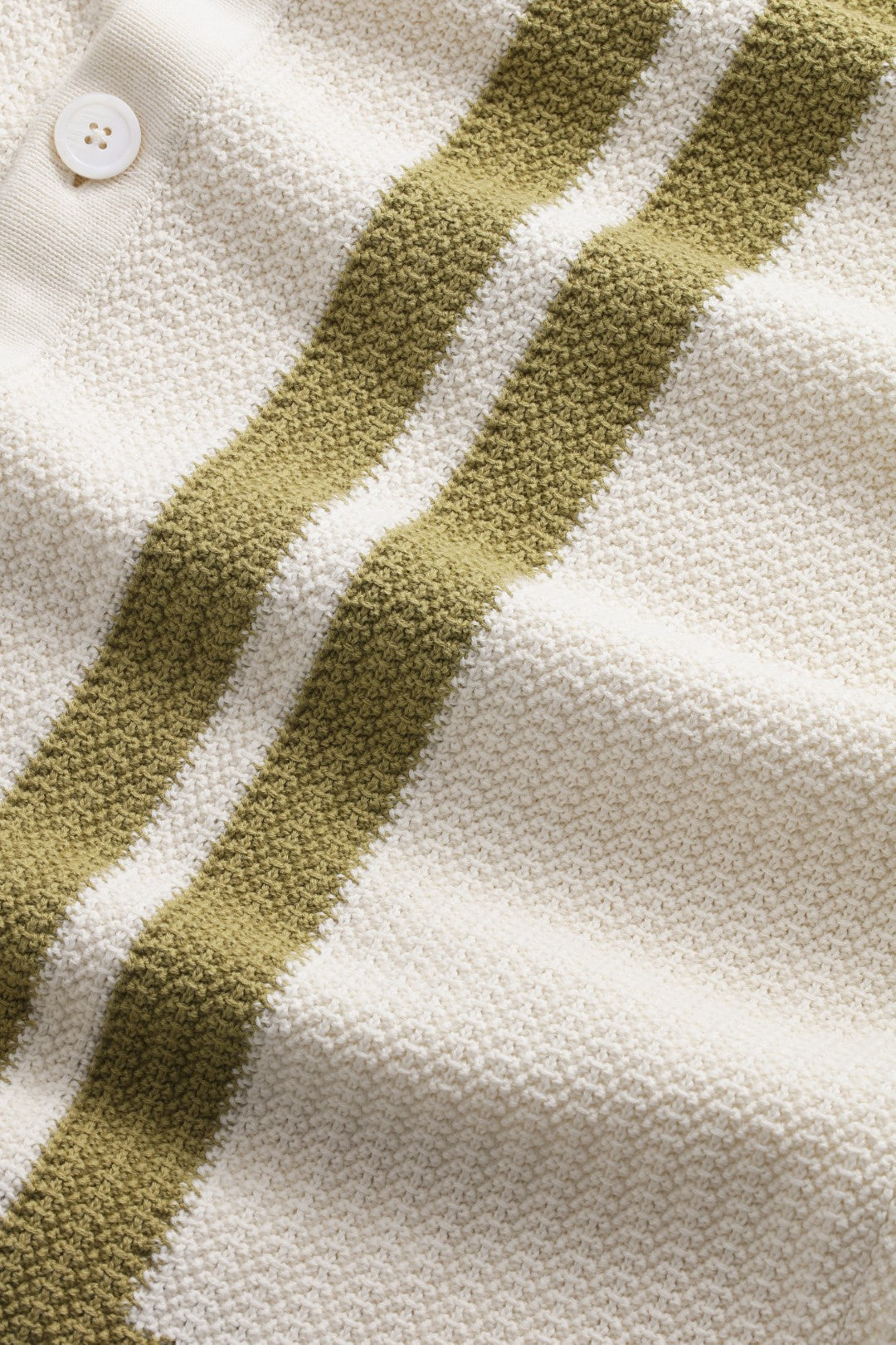 Knitted shirt crafted from organic cotton. Knit in textured stitch with stripe details and finish with Mother-of-Pearl buttons.
