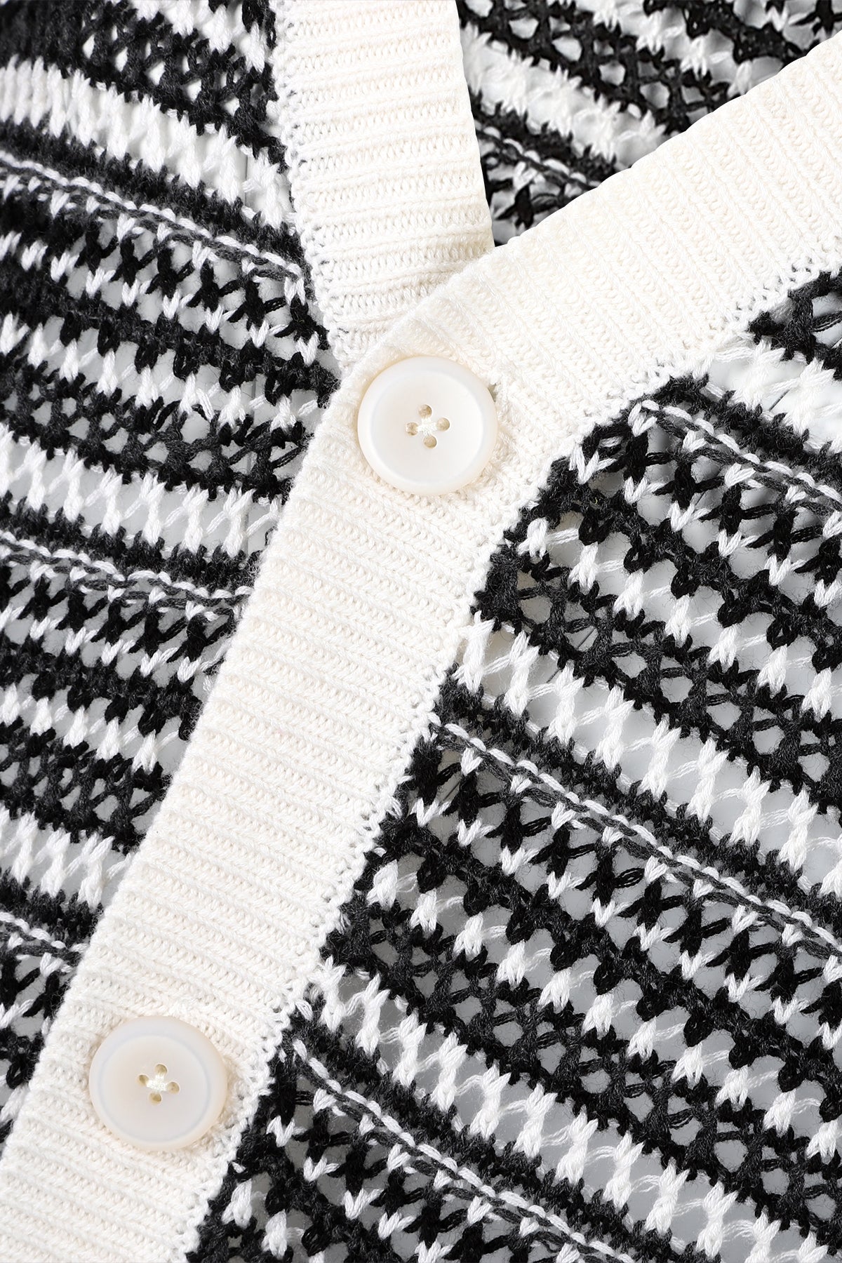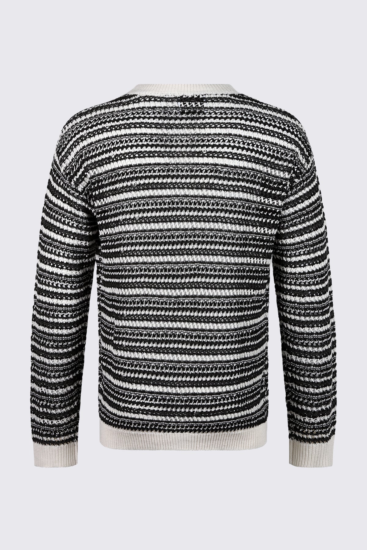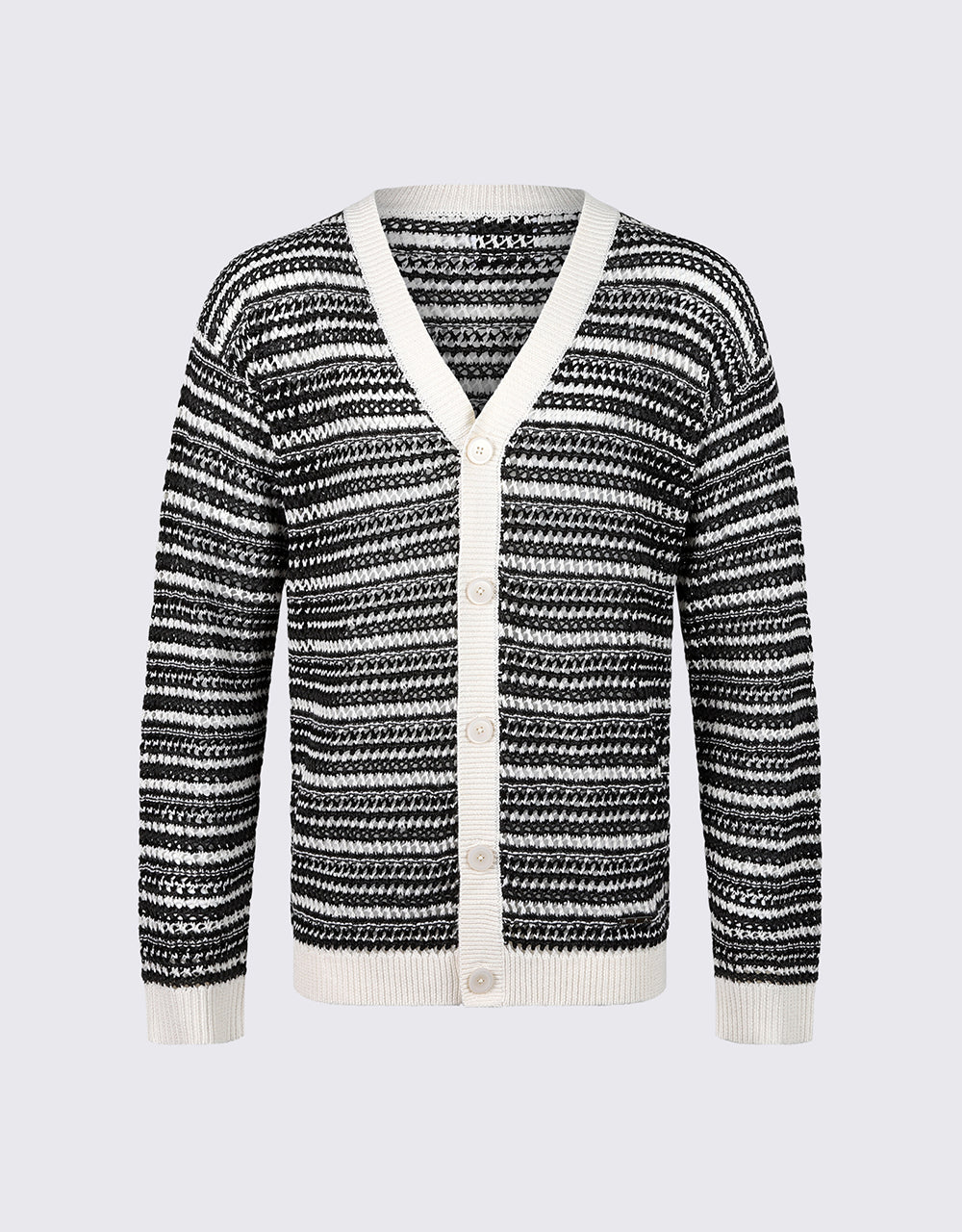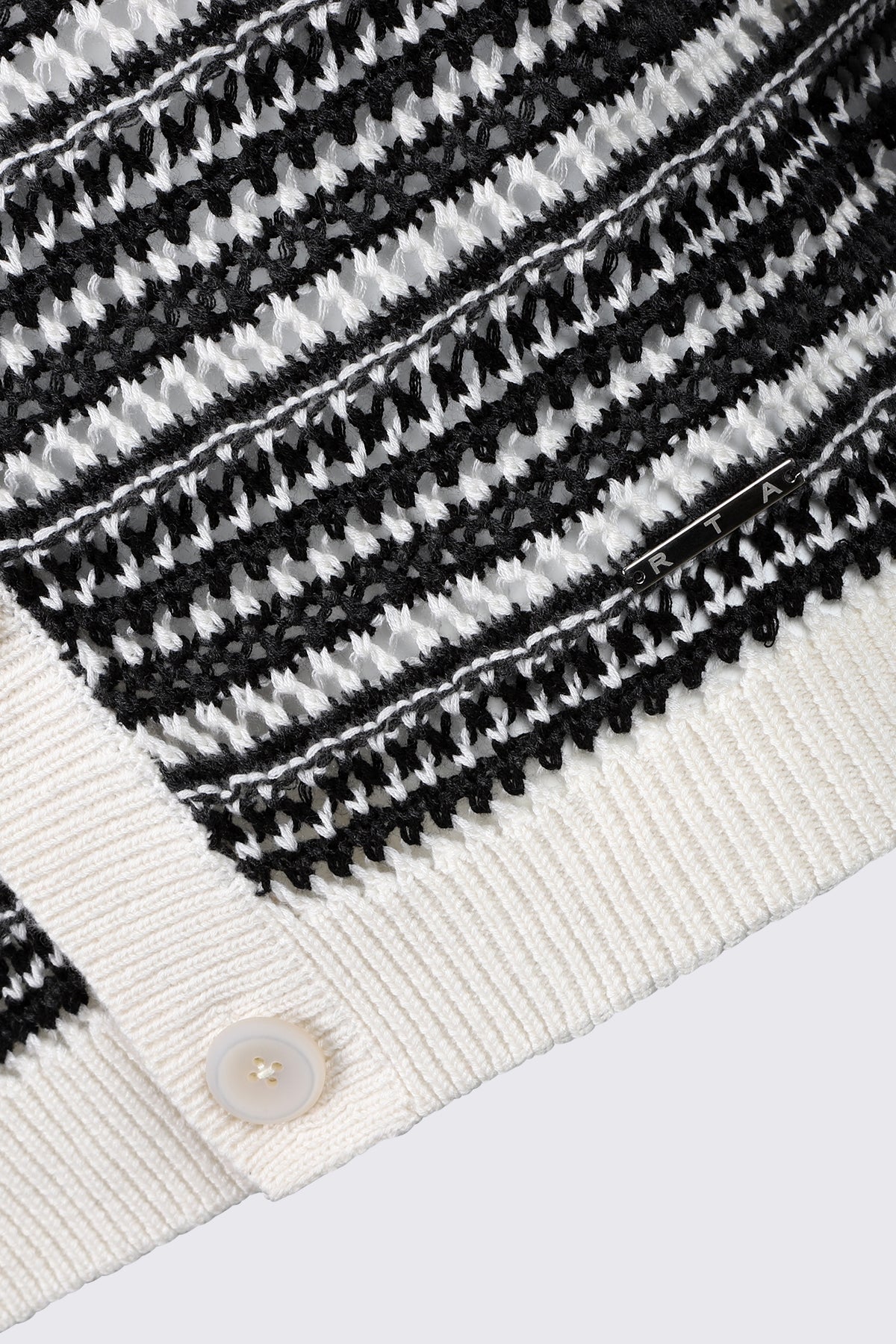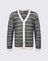 Relaxed fit cardigan in multi stripe open knit with new signature RtA metal bar.