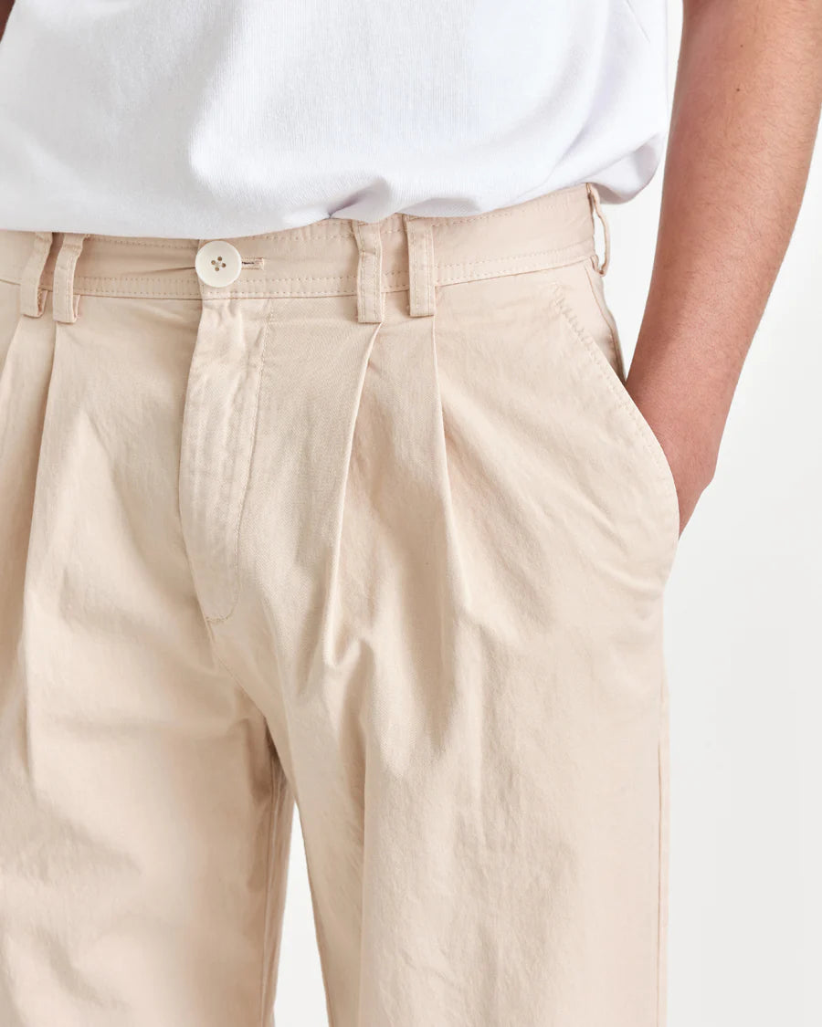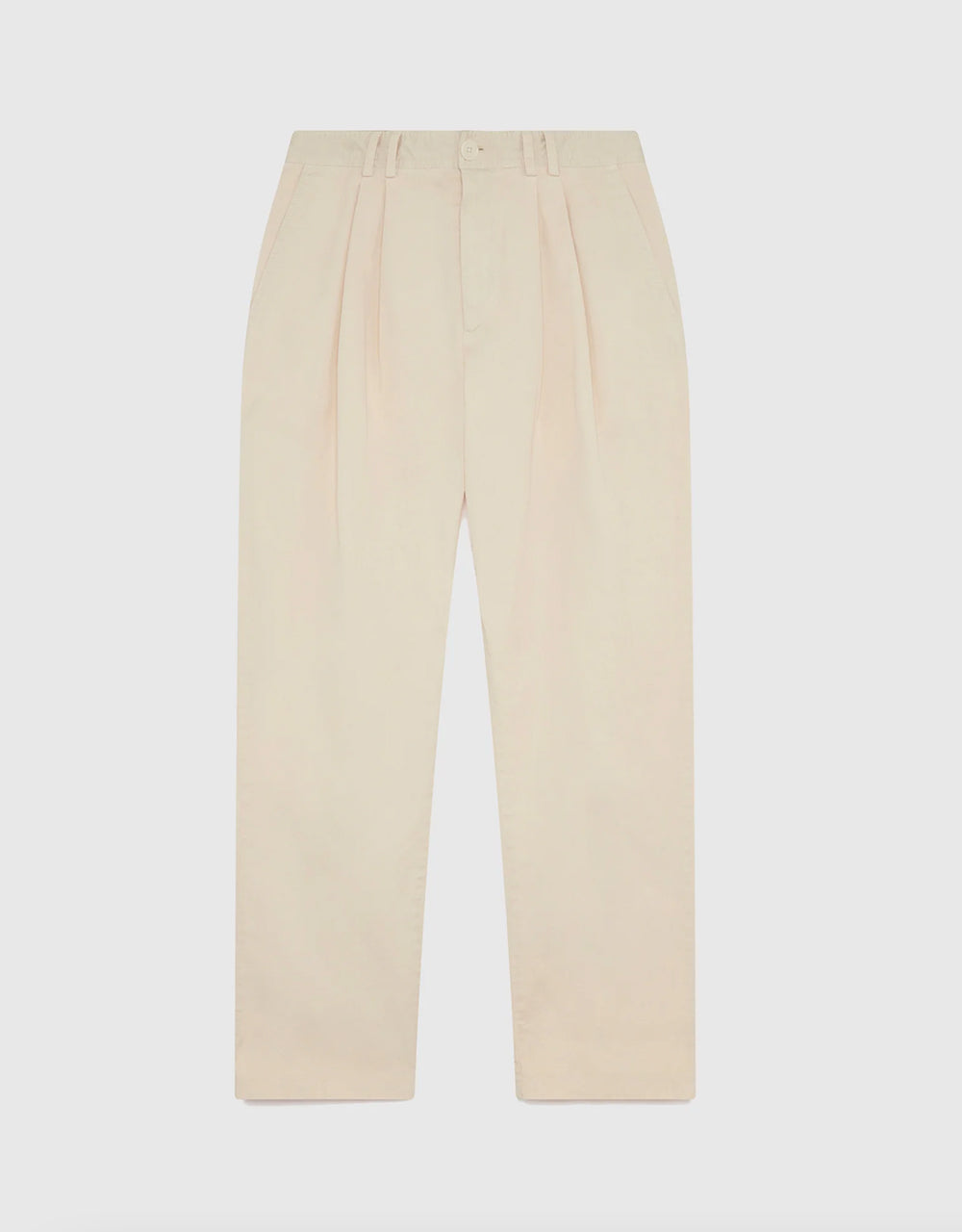 Need a pair of trousers that does both formal and casual? Look no further. Our new pleat trouser has you covered for every occasion. This trouser is made from a sustainable cotton blend and features eco friendly corozo buttons.